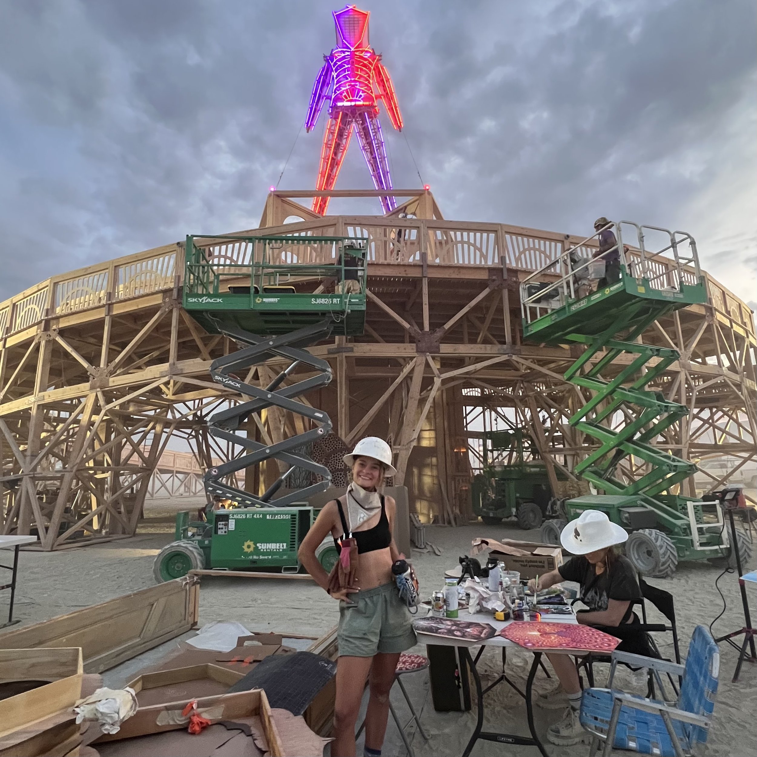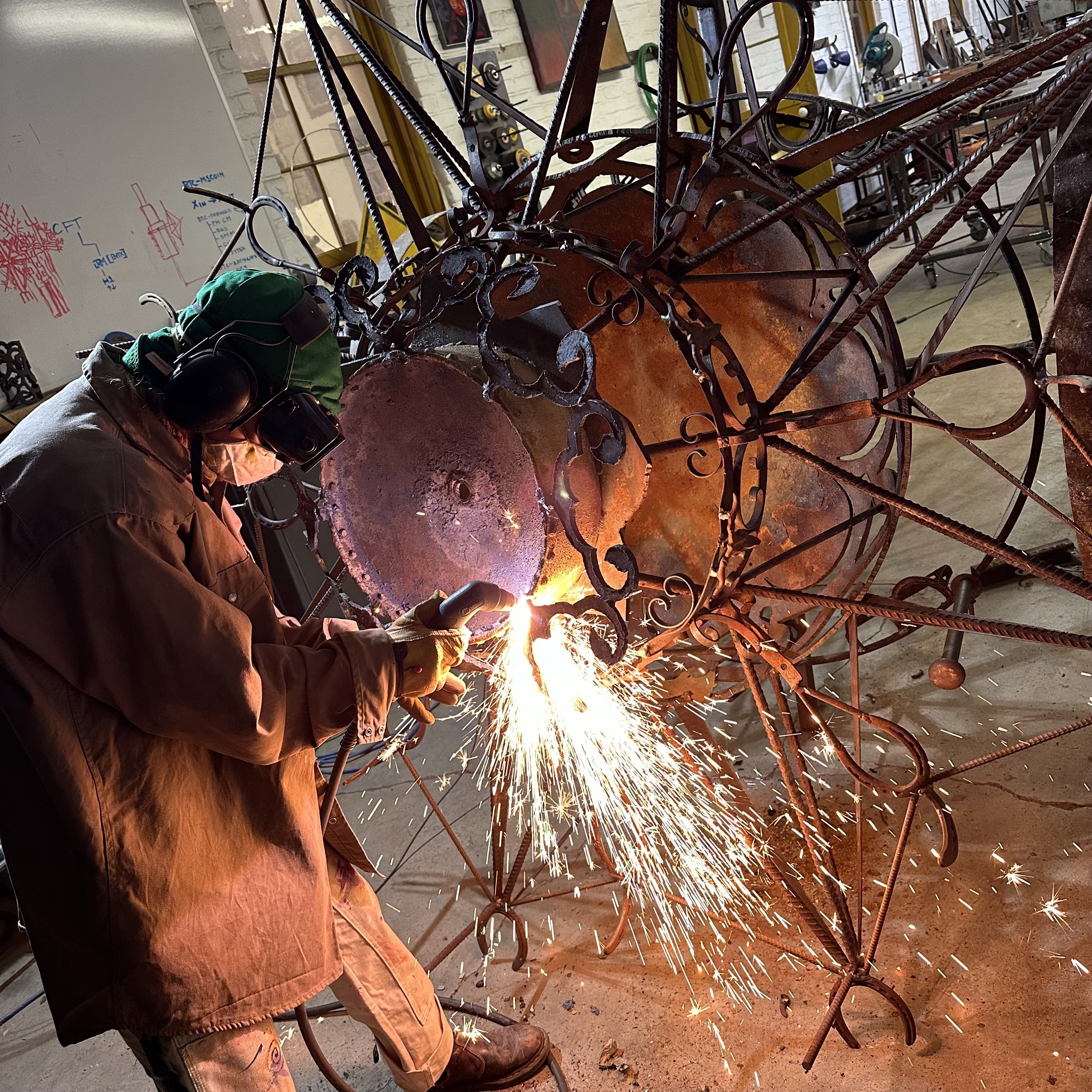 Rooted in the American Southwest, her work bridges painting, visionary art, film, metal work, movement, and community-based artivism. She explores art as prayer, storytelling as resistance, and imagination as a tool for connection.